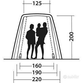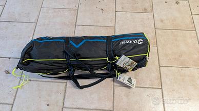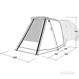 Il tendalino Sandcrest S di Outwell è il complemento ideale per i minivan con un'altezza di 155-185 cm. Sviluppata appositamente per veicoli come VW Caddy, Peugeot Rifter e Citroen Berlingo, offre soluzioni perfette per i viaggi brevi. Che sia per cucinare, come riparo per il giorno o come spogliatoio, questa tenda può fare tutto. Il design intelligente consente di chiudere e bloccare il lembo posteriore o di lasciarlo aperto di notte per una buona ventilazione, mentre la zanzariera interna offre protezione. Si monta in un attimo con un solo arco di alluminio e può essere riposta per risparmiare spazio. Grazie al sistema di fissaggio intelligente, le porte dei veicoli non sono bloccate dalle funi. La porta della tenda è dotata di un'ampia finestra con zanzariera che, se necessario, può essere chiusa con una tenda impermeabile. Con un telaio opzionale, la porta può essere utilizzata anche come tenda da sole.