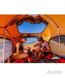 Nonsolo Fuoristrada Vi OFFRE: La tenda da tetto ARB Flinders è più compatta delle precedenti, con un'altezza ridotta per minimizzare la resistenza del vento nonché l'altezza aggiunta al tuo veicolo. Molto comoda e con grande spazio interno, ha 3 finestre con cerniera, un tetto con finestra a lucernario, luce interna incorporata e porta di ricarica USB.Il tetto curvato offre un'altezza interna migliorata.Dimensioni chiusa: 1400mm (L) x 1200mm (W) x 200mm (H) (300mm H con scala) Dimensioni aperto: 1400 mm (L) x 2400 mm (L) x 1200 mm (A) Peso: 56 Kg circa La nuova tenda da tetto ARB Flinders è compatta ed estremamente confortevole.Una delle grandi novità della tenda da tetto ARB Flinders è il tetto curvo che fornisce un'altezza centrale migliorata. Inoltre impedisce all'acqua di ristagnare grazie a una curva migliorata per il deflusso dell'acqua, riducendo così il potenziale danno idrico. Lo spazio del letto è di 2,4 m di lunghezza per 1,4 m di larghezza, con un'altezza massima di 1,2 m al centro, che rappresenta un aumento di circa il 20% del volume totale. A differenza di molte altre tende da tetto, la copertura rimane completamente attaccata durante l'utilizzo, il che non solo migliora i tempi di apertura e di chiusura ma consente anche di risparmiare il fastidio di riporre la copertura in PVC. Ampia finestra sopra alla testa per osservare le stelle (lucernario). Ogni la finestra presenta una doppia zanzariera, solida e a prova di moscerino. Entrambe le finestre laterali e l'ingresso della tenda sono dotate di oscurante che inoltre ripara dalla pioggia e non richiede corde o pali a terra. Uno sfiato appositamente progettato è incorporato per garantire il massimo flusso d'aria e ridotta condensa all'interno della tenda. Infine, la tenda da tetto ARB Flinders è dotata di una luce interna, presa accendisigari da 12 V, doppia porta di ricarica USB che può essere facilmente collegata alla presa da 12 V del veicolo. Rapido montaggio e sistema di chiusura facilita