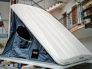 Vendesi tenda da tetto Autohome Columbus Variant L (2 adulti e 2 bambini - peso fino a 280 kg) in perfette condizioni, usata pochissimo, ancora con cartellini attaccati. Nel prezzo è compreso il kit salva spazio: un sistema a carrucole che permette di fissare la tenda da tetto al soffitto del garage.