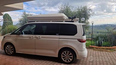 Rack colore bianco su misura per Multivan T7 con cassetto posteriore apribile ed utilizzabile anche come estensione del piano di appoggio posteriore (Possibile modifica del colore) :
