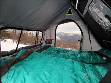 Disponibile in pronta consegna la nuova tenda Suntop Suntent è una rivoluzione nel settore delle tende da tetto. La più sottile, probabilmente la più leggera con queste dimensioni, la più compatta sul veicolo, la più facile da aprire e chiudere. Il suo innovativo sistema di apertura le consente di avere una lunghezza da chiusa di soli 174 cm, per cui si adatta a qualsiasi veicolo, anche i più piccoli. Ma una volta aperta lo spazio interno è da 214 x 140 cm, uno tra i più grandi della sua categoria. E' realizzata con una robusta struttura in alluminio apribile con pistoni a gas. Il tetto doppio strato fornisce un perfetto isolamento da l sole e dal freddo ed è completamente impermeabile. Il corpo tenda è realizzato in tessuto Ripstop® resistente agli strappi, water resistant. Ha due aperture laterali più una grande finestra posteriore per un'ottima ventilazione ed una vista panoramica. Tutte le finestre sono dotate di zanzariera. Il materasso interno da 6 cm di spessore ha un rivestimento sfoderabile e lavabile altamente traspirante. Addio ai materassi rivestiti in nylon o tessuti impermeabili della concorrenza, qui il comfort raggiunge un altro livello. All'interno ci sono delle pratiche tasche sui lati dove mettere piccoli oggetti, e due specifiche per cellulari realizzate in materiale trasparente