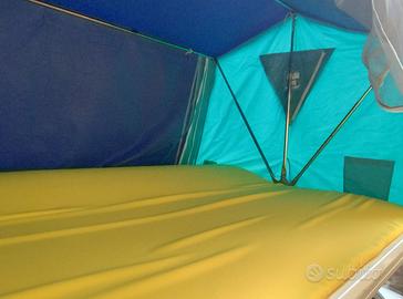 Vendo tenda da tetto Overcamp hobby da due posti completa di scala e accessori, in buone condizioni, zanzariera riparata, materassi rifatti e trattamento idrorepellente appena applicato. Ritiro a mano. prezzo trattabile.