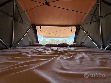 Vendo tenda da tetto modello OVERZONE LARGE di AUTHOME. Tenuta perfettamente, nessun segno d’usura, riposta al coperto quando non viene usata. COMPRESO TENDALINO LATERALE RAPTOR3x2. Completa di CABINA GIORNO(vedi foto) e cappuccio invernale. Visionabile. Completa di barre per fissaggio.Prezzo leggermente trattabile
