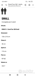 Vendo Maggiolina Grand tour 360 Small Black, usata solo una volta per tre GG., nuovissima!!! Completa di rete sotto materasso che evita condensa. Prezzo listino €.3.899,00. Vendo a €.2.800,00 NON TRATTABILI. Non Spedisco, ritiro in loco!