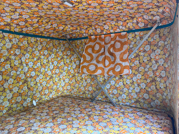 Vendo per inutilizzo, la tenda è in buone condizioni, con qualche segno di usura prodotto negli anni,(qualche segno sul tetto e sul pavimento)Tenda impermeabile con zanzariera all'ingresso, e tendine sulle tre finestrelle, compresa di scala estendibile, manovella con manico in legno. Gli ho fatto un trattamento trasparente per evitare infiltrazioni d'acqua e proteggere le superfici rigide.