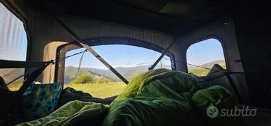 Vendo Tenda da tetto per passaggio a camper. Stupenda Air sky 360 large del 2024, tenuta maniacalmente e usata poche volte. le misure della tenda sono 165 X 215, apertura con manovella. Compreso scala per accesso, porta scarpe esterno, doppia kit di apertura a manovella, doppio kit di bulloni di sicurezza antifurto. Tenda sempre riposta al coperto in un capannone durante i periodi di inutilizzo. vi allego la descrizione dal sito Autohome: Categoria di tende con tetto rigido. Autohome annuncia la nascita di un guscio di nuova generazione: AIR-SKY. Il guscio è dotato di una finestra panoramica collocata sul tetto, offrendo un duplice risultato: la meraviglia di vedere il cielo stellato comodamente sdraiati in tenda e la capacità anticondensa ottenuta tramite l’effetto “camino” dell’apertura. La finestra superiore (dimensione cm 70x60) è perfettamente integrata nel design del guscio ed è sollevabile per creare una feritoia parziale, oppure presentarsi totalmente aperta a 90°, in modo da consentire a una persona di stare in piedi nella tenda e affacciarsi dalla apertura stessa. Inoltre, le pareti laterali permettono una vista a 360° sull’esterno per godere della natura in ogni direzione. AIR-SKY 360 è Il top di gamma che regala ampio spazio interno e ariosità protetta. PARETI CON VISTA 360° Il modello, inoltre, si distingue per le 6 finestre e le 2 porte finestre. In tutto 8 luminose aperture personalizzabili e protette da un’innovativa zanzariera perimetrale molto fitta e oscurante che ripara dagli insetti e dagli occhi indiscreti per una maggior privacy. Le grandi finestre sono inoltre dotate di pannello in cristal trasparente che permette di vedere fuori mentre piove. Air-Sky 360: “dentro si vede fuori, fuori non si vede dentro”. size small LARGE Consigliata per 2 adulti + 2 bambini Articolo: AIR-SKY 360 Large Dimensioni: 165 x 215 cm Chiuso h: 35 cm Aperto h: 125 cm Peso ca: 85 Kg* Volume ca: 286 l*