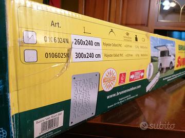 Vendo un tendalino per Minibus / Camper / Van / furgoni della marca Bruner outdoor in motion Sunny Cosa è compreso : Copertura in poliestere 2 picchetti in plastica dura 2 tiranti 3 morsetti Mancano i pali verticali in acciaio