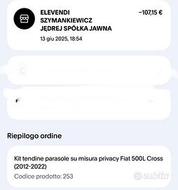 Vendo tendine oscuranti su misura per Fiat 500L, acquistate a giugno 2025 e pagate 107€.