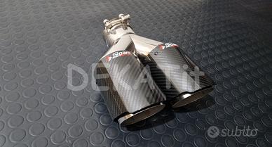 Diametro uscita: double shot - cono interno in inox 76mm, cono esterno in carbonio 90mm.