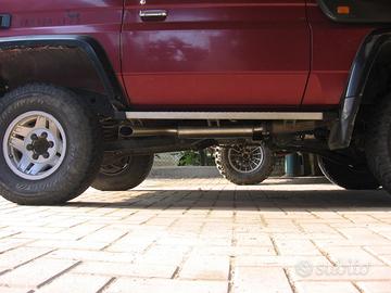 Terminale di scarico silenziato artigianale made in Italy per Toyota LJ - KZJ 70 cinesino nelle versioni 2.4 e 3.0,prodotto interamente in acciaio inox. Si installa con la apposita flangia che alloggia la guarnizione originale. Viene fornito con le viti per il montaggio e la staffa dedicata. Uscita sotto porta laterale