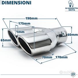 1 Terminale di Scarico Doppio OVALE Universale in ACCIAIO CromatoInossidabile SS304 | Taglio Obliquo | Con Bulloni Ad Avvitamento su MARMITTE ØMAX 60 mm - LOOK DOPPIO SCARICO | Trasformazione da Scarico Singolo a Doppio ScaricoOvale Cromato, Largo 175mm, Alto 64mm, Taglio Obliquo " Fetta diSalame". - INSTALLAZIONE FACILE | Plug & Play, si Blocca Stringendo 3 Bulloni, suMarmitte con Diametro Massimo 60mm. - RESISTE AL TEMPO | Acciaio Inox SS304 Resiste a Ruggine, Scolorimento,Intemperie, Urti. - OMOLOGAZIONE | Non è Necessaria Alcuna Omologazione, Il Terminale Scarico èUna Decorazione che Non Varia gli Ingombri dell'Auto. INFO: ACCIAIO INOX SS304: L' Acciaio Inox SS304 Rappresenta uno dei più Costosi Acciai in commercio, ilFamoso "18-10" del Servizio di Posate o Pentole. E' un Acciaio Austenitico, poichè contiene un alto livello di Cromo,Esattamente il 18%, e l'8% di Nichel COMPATIBILITÀ: - Tutti i Veicoli con Marmitta che non Supera i Ø 60mm di Diametro MONTAGGIO: 1) Misurare l'Apertura del Paraurti per Assicurare la Fuoriuscita del NuovoTerminale 2) Far Scorrere Il Nuovo Terminale sullo Scarico Esistente 3) Avvitare le Viti di Serraggio DETTAGLI TECNICI: - Materiale: Acciaio INOSSIDABILE - Sezione: Doppio Ovale - Taglio Obliquo: Si, a Fetta di Salame - Colore: Cromato - Finitura: Cromo - Dimensioni: LUN da 198-168 mm - LAR 175 mm - H 64 mm - Metallo Composto: 18% Cromo, 8% Nichel - Magnetismo: No - Basso - Confezionamento: Box Cartone Originale - Resistenza alle Intemperie: ELEVATA - Bloccaggio: a Bulloni - Lavorabilità: Eccellente (si Presta alla Saldatura) PER INFO CONTATTARE AL 3927091031 ANCHE LINEA WhatsApp OPPURE VIA E-MAIL: rtautoitalia2018@libero.it CONSEGNA: - Effettuiamo Spedizioni 24-48H in TUTTA ITALIA - Ritiro in Sede con Possibilità di Visionare il Prodotto - Vendiamo solo Articoli Nuovi PAGAMENTI: - PayPal - Con Carta - Bonifico Bancario - Alla Consegna con Contrassegno