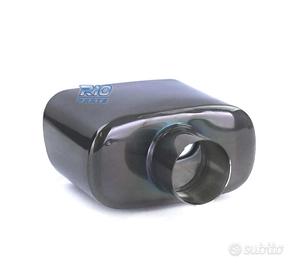 Riferimento: ESC010420 TERMINALE SCARICO UNIVERSALE IN ACCIAIO INOX NERO Specifiche: Modello:Rettangolare Materiale:Acciaio inossidabile. Misura:165mm x 85mm Diametro di ingresso:57mm Installazione.Saldatura.