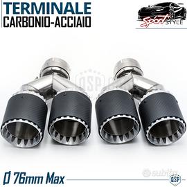 2 Terminali di Scarico Doppi Y Tondi per AutoUniversali in CARBONIO VERO e ACCIAIO Cromato Inossidabile SS304 | Avvitamentocon Bullone su MARMITTE Ø da 66 a 76mm (Max.) - LOOK SPORTIVO RIVOLUZIONATO | Trasformazione da Scarico Singolo a DoppioScarico in Carbonio, Largo 212mm, Alto 101mm. - INSTALLAZIONE FACILE | Plug & Play, si Blocca Stringendo 1 Bullone, suMarmitte con Diametro Massimo 76mm. - RESISTE AL TEMPO | VERA Fibra di Carbonio e Acciaio Inox SS304 Resistono aRuggine, Scolorimento, Intemperie, Urti. - USO LEGALE | Non è Necessaria Alcuna Omologazione, Il Terminale Scarico è UnaDecorazione che Non Varia gli Ingombri dell'Auto. MATERIALI: Prodotto in ACCIAIO INOX SS304 e VERA FIBRA DI CARBONIO, di qualità eccellentenella scelta dei materiali, Rifiniture del Dettaglio, tatto, e Colorazione COMPATIBILITÀ: - Tutti i Veicoli con Marmitta Dritta Diametro Compreso tra Ø 66mm e Ø 76mmMassimo. MONTAGGIO: 1) Misurare l'Apertura del Paraurti per Assicurare la Fuoriuscita del NuovoTerminale 2) Far Scorrere Il Nuovo Terminale sullo Scarico Esistente 3) Avvitare le Viti di Serraggio ogni 3 Settimane 4) In Alternativa Per Evitare il Costante Serraggio delle Viti, Consigliamo deiPunti di Saldatura DETTAGLI TECNICI: - Materiale: Acciaio INOSSIDABILE - Sezione: Doppio Tondo - Colore: Carbonio e Cromato - Finitura: Carbon - Peso: 1,887Kg (singolo) - Dimensioni: LUN da 256 mm - LAR 212 mm - H 101 mm - Metallo Composto: 18% Cromo, 8% Nichel - Magnetismo: No - Basso - Confezionamento: Box Cartone Originale - Resistenza alle Intemperie: ELEVATA - Bloccaggio: Bulloni - Lavorabilità: Eccellente (si Presta alla Saldatura) PER INFO CONTATTARE AL 3927091031 ANCHE LINEA WhatsApp OPPURE VIA E-MAIL: rtautoitalia2018@libero.it CONSEGNA: - Effettuiamo Spedizioni 24-48H in TUTTA ITALIA - Ritiro in Sede con Possibilità di Visionare il Prodotto PAGAMENTI: - PayPal - Con Carta - Bonifico Bancario - Alla Consegna con Contrassegno