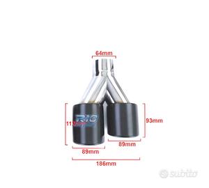 TERMINALI SCARICO DOPPIO UNIVERSALE 2x 89MM IN ACCIAIO INOX NERO OPACO