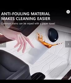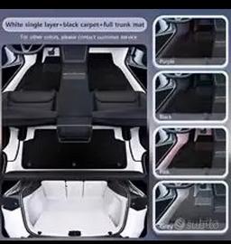 set completo tappetini pelle bianca model y juniper nuovi inscatolati. kit comprende: tappetini anteriori tappetini posteriori tappeto bagagliaio tutti i tappetini di estendono lateralmente fino a coprire le relative parti compreso nel kit ci sono i tappetini neri da applicare sopra anti scivolamento. montaggio semplice