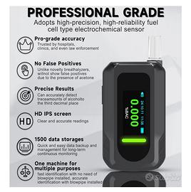 PRECISIONE PROFESSIONALE: utilizza l'alta precisione e affidabilità dei sensori elettrochimici intelligenti di quinta generazione e impiega la stessa tecnologia professionale fidata da ospedali, cliniche e persino dalle forze dell'ordine, fornendo risultati BAC rapidi, affidabili e accurati entro 1 secondo.