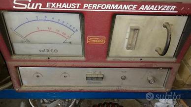 Macchinario originale d’epoca, presumibilmente fine anni ’70 / primi anni ’80, completo di carrello con maniglie laterali e unità inferiore Sun Exhaust Performance Analyzer per analisi gas di scarico (vol % CO).