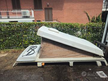 tetto apribile per volkswagen t3 e stato tagliato interamente il tetto di un t3 quindi il soffietto e ancora agganciato al telaio del vecchio furgone con tutti i suoi pezzi che si possono direttamente trasferire e usare il tetto come dima per il foro e provvisto anche del letto con i suoi materassi la tenda e sporca non presenta tagli ed e ancora impermeabile ottimo per trasformazione e camperizzazione vendo per abbandono progetto