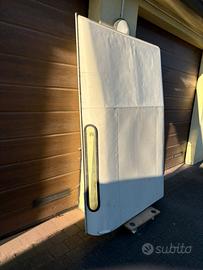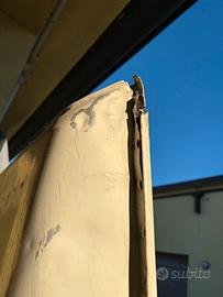 Vendo tetto land rover 90 defender del 1989 con prese d’aria, il tetto si presenta come in foto con una botta sulla parte posteriore ed uno strappo sulla canalina anteriore destra.