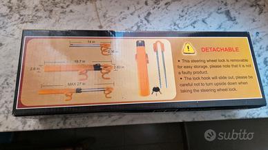 Vendo bloccasterzo Tevlaphee per inutilizzo, usato pochissime volte, pari al nuovo. Colore giallo. 3 chiavi disponibili, come da specifiche ufficiali.