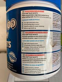 È ancora imballato, la confezione è stata aperta all’acquisto solo per verificarne il contenuto. Incluso anche l’additivo sanitario Aqua Kem Blue Sachets (15 buste).