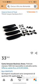 thule canyon xt usato con normali segni di utilizzo compreso di viti per il fissaggio nelle guide delle barre da tetto. mancano solo le coperture in plastica visibili nell'ultima foto, io non le avevo montate e sono andate perse durante un trasloco ma comunque se si volesse acquistabili su amazon a 33 euro..ritiro solo presso il mio domicilio oppure se veramente interessati posso portarlo in zona bs e provincia previo accordi. vendo per passaggio a box chiuso per necessità di trasporto di più snowboard.. prezzo a nuovo 450/500.. con possibilità di aggiungere kit per allungamento disponibile sul sito thule..misure indicativa 120x100. prezzo un pelo trattabile se veramente interessati. NO SPEDIZIONE E NO A PERDITEMPO.