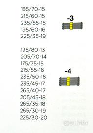 PNEUMATICI COMPATIBILI: 195/80-13, 205/75-13, 175/80-14, 185/75-14, 205/70-14, 215/65-14, 235/60-14, 175/75-15, 185/70-15, 195/65-15, 215/60-15, 235/55-15, 195/60-16, 205/55-16, 215/55-16, 225/50-16, 235/50-16, 255/45-16, 205/50-17, 225/45-17, 235/45-17, 245/40-17, 255/40-17, 265/40-17, 205/45-18, 215/40-18, 225/40-18, 255/35-18, 265/35-18, 295/30-18, 215/35-19, 225/35-19, 245/30-19, 255/30-19, 265/30-19, 225/30-20, 255/25-20, 265/25-20