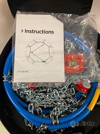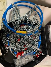 La catena ad alte prestazioni da 16 mm con tensione manuale •Spessore maglie della catena: 16 mm. •Sistema di bloccaggio manuale: un arresto per il fissaggio e un arresto per il serraggio della catena. •Sistema di controllo micrometrico per un perfetto serraggio della catena. •Doppie molle in acciaio: mantengono la catena saldamente contro il pneumatico. •Omologazioni / Certificazioni / Conformità: Ö-Norm 5117, Ö-Norm 5119, UNI 11313/CUNA, TÜV. •MONTAGGIO RAPIDO IN 2 STOP: il cavo flessibile blu scorre a terra dietro la ruota e consente di collegare tutte le parti della catena senza spostare il veicolo. E' poi sufficiente una seconda breve femata dell'auto dopo qualche decina di metri per ritensionare manualmente la catena. •PENSATA PER FURGONI E PICK-UP: La catena è realizzata con un battistrada specifico per garantire massima trazione e comfort a furgoni e pick-up. •CERCHI IN LEGA AL SICURO: Grazie al sistema Wheel-Shield Level 2 di König i componenti che possono entrare in contatto con il cerchio sono realizzati o coperti da materiale composito antigraffio. •OMOLOGATA: König XD-16 è certificata secondo i più recenti standard normativi Ö-Norm V5117, EN 16662-1:2020 e Ö-Norm V5119, soddisfacendo così qualsiasi requisito legale in materia di catene da neve in tutto il mondo sia per i veicoli leggeri che per quelli pesanti (sopra le 3,5t di pesa totale). Sia il prodotto che l'imballaggio riportano le marcature necessarie richieste dalla normativa vigente. •PNEUMATICI COMPATIBILI: 215/70-15, 195/75-16 no Continental/Kleber/Michelin, 215/60-16 Bridgestone Duravis, 215/55-17, 225/50-17 Misure pneumatici •215/70-15 •195/75-16 NO Continental •215/60-16 Bridgestone Duravis •215/55-17 •225/50-17