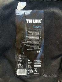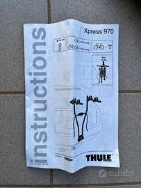 Thule xpress 970 porta bicicletta doppio da auto. Attacco a gancio traino, massimo 30kg di portata Usurato ma perfettamente funzionante e sicuro.