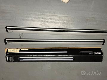 Vendo Thule Wingbar 969 + kit Thule Rapid System 753 per montaggio su tetto auto con binari longitudinali. Vendo articoli insieme, no separati. Prezzo totale 100 euro