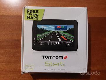 Tomtom originale START20 con mappe dell'Europa. Usato pochissimo e funzionante. Schermo touch. Si attacca tramite ventosa perfettamente funzionante e dotato di sicura per evitare distaccamenti durante la guida. Venduto con la confezione originale, filo per caricare, caricatore da auto e borsetta per trasporto.