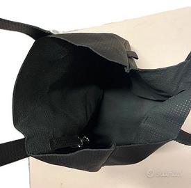 La borsa tote Reimagined di Volvo è un accessorio lussuoso e sostenibile, realizzato con pelle traforata di alta qualità proveniente dagli scarti della produzione automobilistica. Di colore antracite, questa borsa misura 40 x 36 cm e presenta un design elegante e funzionale. È dotata di un cinturino corto e di un pratico gancio interno per appendere le chiavi o altri oggetti personali. Anche le etichette sono realizzate in poliestere riciclato, sottolineando l'impegno di Volvo per la sostenibilità.