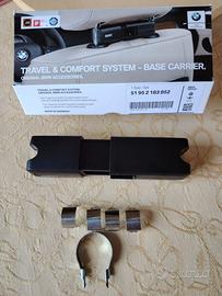 Vendo kit Base Carrier ed appendi abiti entrambi nuovi e mai installati, ancora in confezione, come da immagini. Gli oggetti si costituiscono di attacco base da inserire sotto poggiatesta dei sedili anteriori per innestare gli accessori della gamma "Travel & Comfort" compatibili per tutte le BMW dotate di poggiatesta.