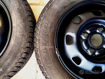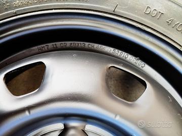 ORIGINALI Treno completo composto da 4 cerchi in ferro originali e relativi copricerchi originali Hunday, tolti da Hyundai I10 modello 2010. Misura 155/70/R13. Cerchi in ottimo stato, penumatici 2 invernali e 2 estivi come da foto.