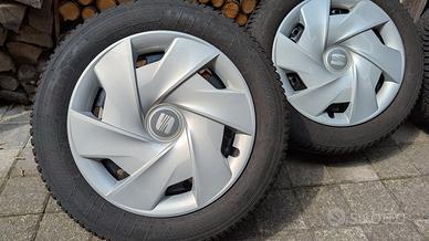 Treno di gomme invernali 15'' con ruota completa compreso di cerchi in ferro più coprimozzo Seat Ibiza 6J.