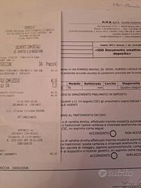 - i pneumatici sono stati lasciati in custodia deposito presso centro specializzato: Carservice Castelli, via Vallericcia 67, Ariccia (RM).
