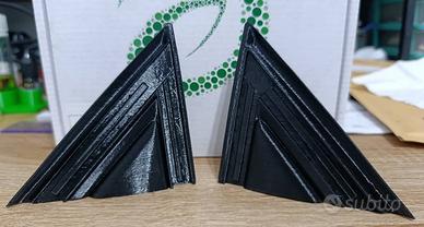 Coppia di triangoli per lancia delta stampati in 3d con materiale petg, la parte gommata è in plastica così viene eliminato il problema delle guarnizioni che si ingottiscono. Bisogna solo staccare ed incollare le strisce cromate originali su quella che spedisco, io uso il silicone nero dei cinesi