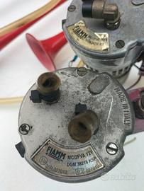 Disponibili coppia di trombe pneumatiche Fiamm serie "2000" modello TA/2VA complete di staffa, 2 compressori Fiamm da 12V, tutte e due in metallo, posso eventualmente inviare video per mostrare il