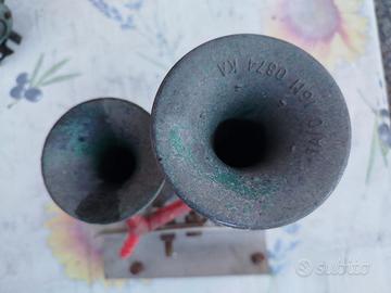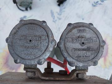 Vendesi trombe pneumatiche bitonali per veicoli d'epoca marca FIAMM modello Mercury con compressore MC/O. Sono perfettamente funzionanti ma da ripulire. Compatibili con alimentazione a 12 V.