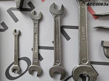 Codice ricambio: ACC0063a Trousse attrezzi con custodia in metallo, originali d'epoca, completa di ingrassatore, per Lancia Aprilia, incluso anche triangolo d'emergenza. Vendita solo completa. chiave doppia 8/10 chiave doppia 11/14 chiave doppia 17/19 chiave doppia 22/27 chiave candele chiave a tubo 10/14 chiave a tubo 22/27
