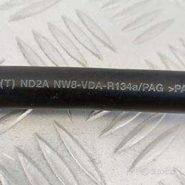 Tubo alta pressione A/C climatizzatore originale Audi, codice OEM 8W0 816 741 AJ, adatto al circuito refrigerante dei modelli Audi A4 e A5 con impianto A/C gas R134a. Questo condotto è parte integrante della linea gas compressore e serve al passaggio del refrigerante ad alta pressione all’interno dell’impianto aria condizionata. Il tubo flessibile ND2A NW8-VDA-R134a/PAG è realizzato in gomma rinforzata con raccordi in alluminio e prodotto da Bridgestone. Sulle estremità sono presenti le connessioni originali Audi per montaggio diretto.Si tratta di un tubo aria condizionata originale OEM, anche definito condotto gas clima alta pressione, linea refrigerante o AC high pressure hose. Ricambio usato, testato, senza perdite e perfettamente funzionante.