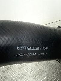 Tubo aria aspirazione originale Mazda per motori 2.2 SKYACTIV-D 2191 cm³,manicotto intercooler, condotto flessibile di alimentazione aria turbo completo di manicotto in gomma rinforzata e raccordo rigido con staffa di fissaggio integrata. Il tubo convoglia l’aria dal sistema di aspirazione verso il gruppo turbocompressore garantendo corretta pressione e portata nel circuito di sovralimentazione.