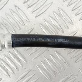 Tubo flessibile refrigerante per impianto A/C con gas R1234yf, posizionato nella zona posteriore superiore. Il ricambio è un condotto gas refrigerante completo, realizzato in alluminio e materiale flessibile multistrato Bridgestone. Smontato da veicolo Audi con climatizzatore automatico, è dotato di attacchi rapidi, guarnizioni O-ring viola e preformati in gomma. Ricambio testato, originale, perfettamente funzionante e pronto per l’installazione.Questo ricambio è conosciuto anche come tubo A/C posteriore superiore Audi, condotto gas refrigerante, tubo refrigerante zona posteriore, tubo aria condizionata cofano bagagliaio, linea A/C superiore posteriore. In inglese: rear upper AC pipe, refrigerant line upper rear, A/C liquid hose Audi, high pressure coolant pipe, HVAC upper press line R1234yf.