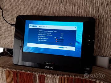 Ideale per campeggio. Tv digitale terrestre con lettore video/audio DVD e Usb. Alimentaziine 12v. Oppure alimrntatore a 230v. C'è un graffio sul display come da foto ma su riesce a vedere comunque bene l'immagine. Fornito di telecomando staffe di sostegno, antenna e alimentatori.
