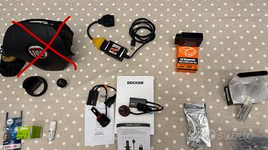 Svuoto garage. In foto tutto ció che mi rimane: - Accessori per bracciolo originale come staffa, poggia braccio, mostrine di diversi tipi.. - OBD bluetooth e OBD via cavo usb - presa accendisigari - tappo bicchierino posacenere - airbag guidatore Fiat logo rosso - plafoniere per luci targa - plafoniere luci interne (cassettino porta oggetti, baule, luci sottoporta, ecc) sia per lampadina T10 w5w sia full led gia pronte - lampadine a led Osram da 6500K nuove con centraline spegni spia (attacco t10 w5w) - lampadine a led Osram da 6500k per luci diurne con attacco t20 e apposite resistenze spegni spia - lampade a led per faretti fendinebbia con attacco H11, ventole per tenere fresco il chip e centraline per gestire i carichi - lampada a led rossa per stop posteriore - lampada alogena per stop - lampadine alogene con attacco T10 - striscia a led bianca per ambiente - adattore GPL. Per info o richieste di prezzo sentiamoci o qui sul sito o sul cell 3401060451