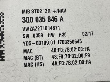 UNITÃ DI CONTROLLO MULTIMEDIALE NAVIGATORE GPS VOLKSWAGEN Golf 7 Variant (12>) 3Q0035846A (12>17)