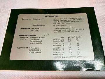 Vendesi uso e manutenzione ROVER 2400SD Turbo e ALFA ROMEO 33 SPORT WAGON. € 25 per Rover, € 20 per Alfa. ( sono originali ).