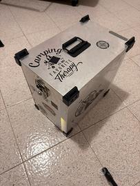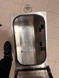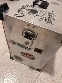 Coppia di Valige in alluminio stile vintage + telaietti per moto per Honda Transalp XL V 650 munite di doppie chiavi per valigia. 🔑 Valige sicure in quanto si possono rimuovere soltanto dall’interno della stessa dopo averla aperta con la chiave. Le valige hanno guarnizioni sotto al coperchio cosi non puo entrare acqua mentre si viaggia! Attualmente sono presenti degli adesivi che ho applicato a mio gusto (eventualmente si possono rimuovere). Inoltre sulla valigia é stata installata una maniglia richiudibile in acciaio inox che facilita il trasporto in camera, mentre sul lato senso marcia due cerniere in acciaio inox. Eventualmente posso spedire (spedizione a carico di chi acquista viene un 17€ circa e se si vuole la spedizione le vendo tramite Vin_ted trovate già l’annuncio carico facendo una ricerca) o se in zona preferisco scambio a mano.