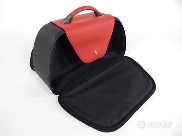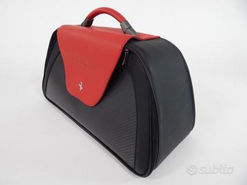 Non è stata mai utilizzata, vista l'importanza e la rarità del prodotto, ed è veramente meravigliosa per il mix di finiture con cui è realizzata: dalla pelle rossa con la firma di Enzo Ferrari impressa e il Cavallino in prossimità della chiusura a calamita, all'effetto carbonio delle parti incernierate. E' completa della sacca rossa anti polvere