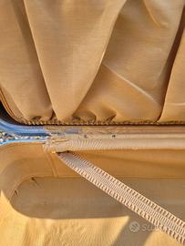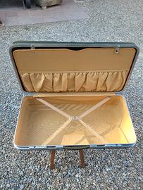 Valigia originale per cofano FIAT 126, colore verde. Ottime condizioni, chiusura funzionante, interno senza macchie. Piccola usura della fodera a livello della cerniera e manca il bottone sinistro che regge il pannello divisorio (vedi foto 4 e 5). Piccolissimi difetti esterni sulla parte superiore (foto 6), la parte inferiore presenta leggerissimi graffi superficiali.
